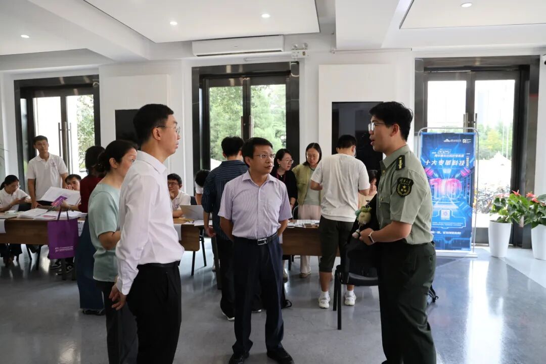 EEA Dean Prof. Kang Chongqing visited the registration site in the company of EEA Deputy Party Secretary Yu Zhanqing and Head of the Graduate Student Work Group Zhong Haiwang to inspect and guide the orientation work, extend cordial greetings to staff and volunteers, and communicate face-to-face with new students.