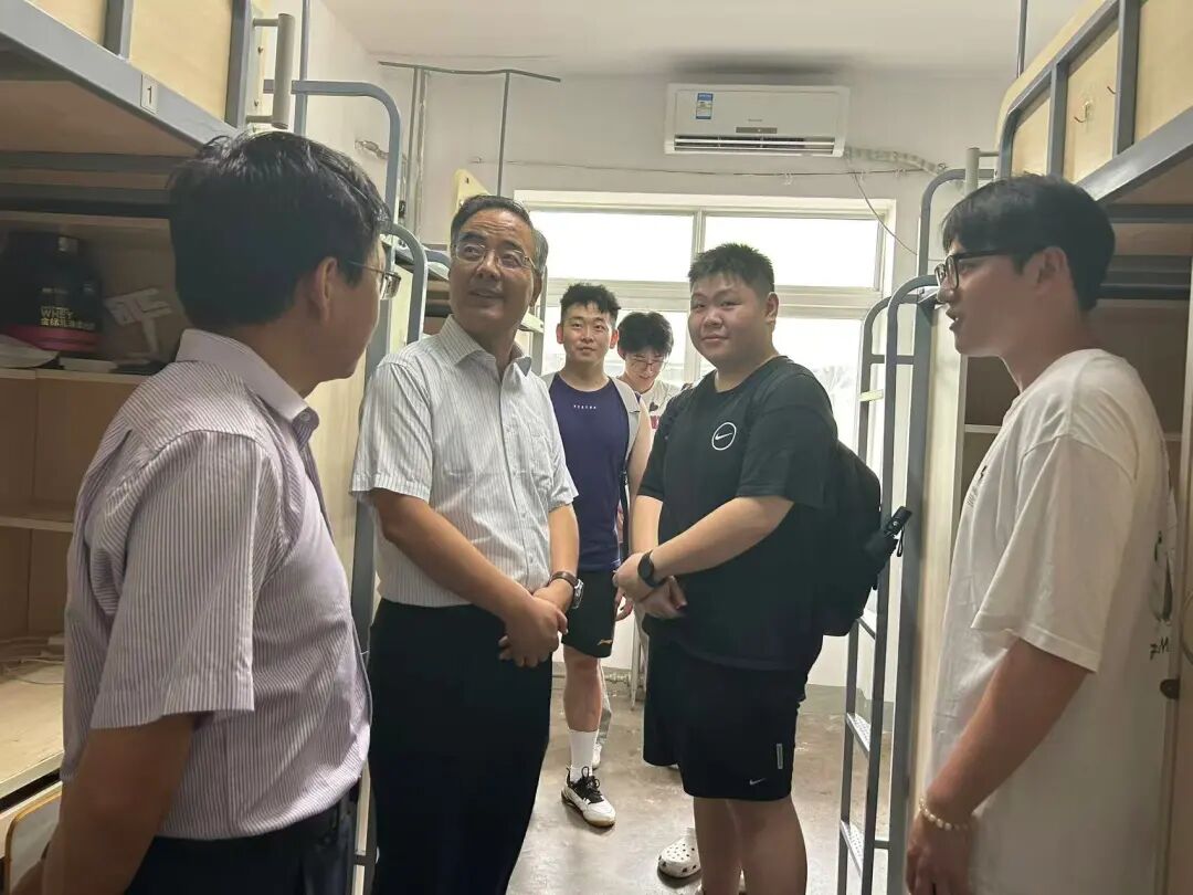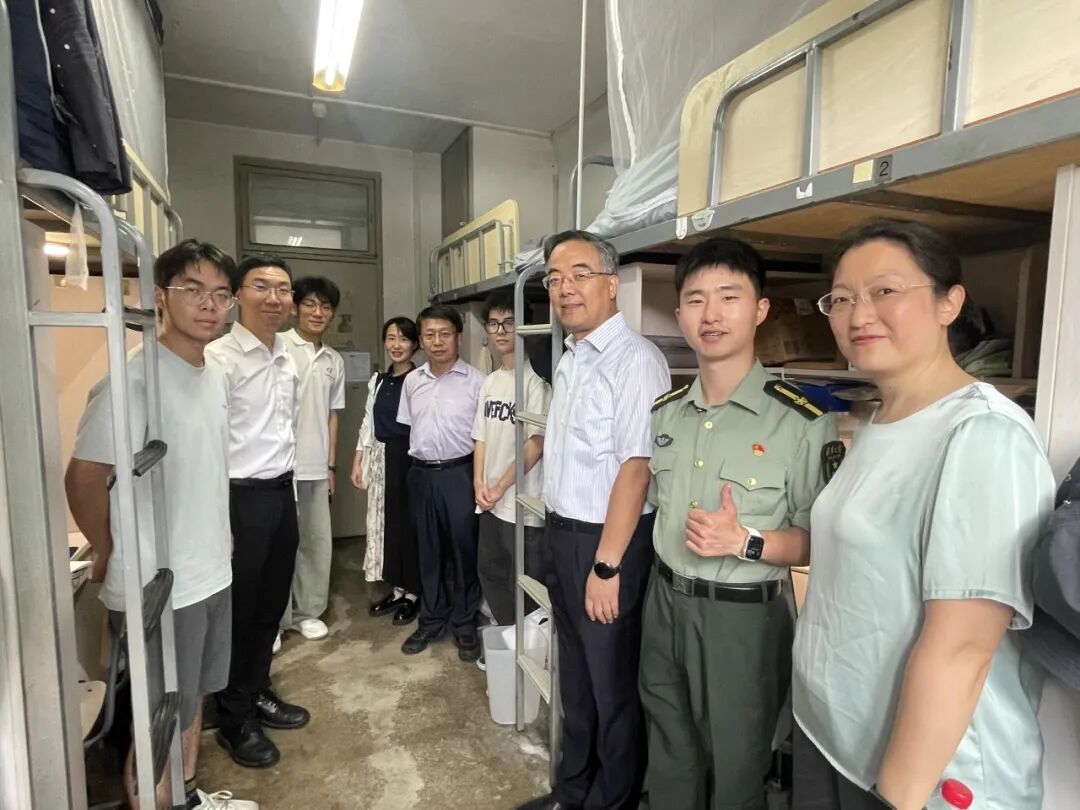 To gain an in-depth understanding of student accommodation and coordinate with the university’s renovation of older dormitories, EEA Dean Kang Chongqing led a visit to student dormitories following the registration site inspection. Deputy Party Secretary Yu Zhanqing, Head of the Graduate Student Work Group Zhong Haiwang, Student Work Assistant Luo Jiao, Community Center Teacher Wang Xin, and freshman class assistants Pang Jupeng and Xu Yuyan accompanied him. They visited Dormitory Buildings 3, 23, and 28. At each dormitory, the leadership inquired about students’ adaptation to the living environment, carefully inspected furniture, facilities, sanitation, and safety, and patiently listened to students’ feedback. Notably, Building 3 had been Prof. Kang Chongqing’s dormitory during his graduate studies. During the visit, he reflected on the dramatic changes to the dormitory and recalled his own graduate student experience.