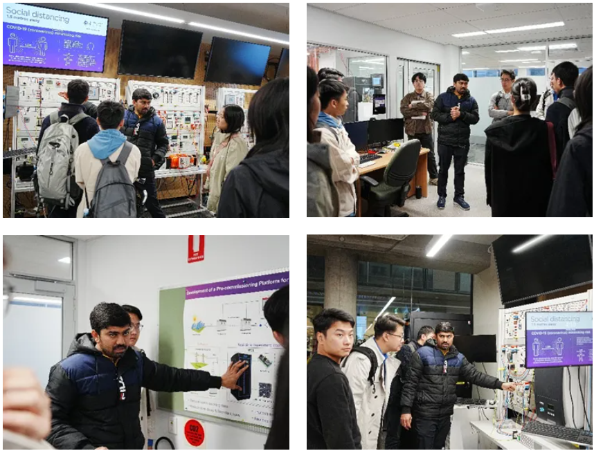 The team first met with faculty and students in a conference room. Prof. Richard Yan warmly welcomed the visiting students and introduced UQ’s main research areas in power and energy. Then, three students presented their research: Wang Ziyuan on the electromagnetic effects of lightning on photovoltaic systems; Feng Songjie on integrated day-ahead and real-time optimal scheduling for energy systems; and Guan Haoyu on high-frequency (1kHz–100kHz) gas switch studies of repetitive breakdown voltage and channels. Prof. Bai Feifei subsequently introduced her group’s research progress in photovoltaic and other renewable energy optimization.