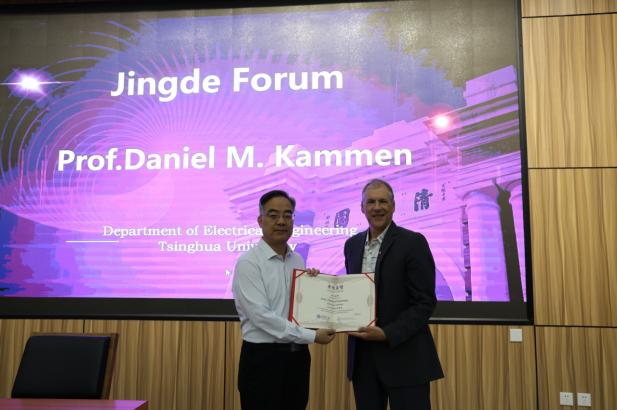 Professor Sun Kai introduced the background and purpose of the Jingde Forum and highlighted Professor Daniel Kammen’s major academic contributions. Subsequently, Professor Kang Chongqing, on behalf of EEA, presented Professor Kammen with a commemorative certificate and plaque for the Jingde Forum.
