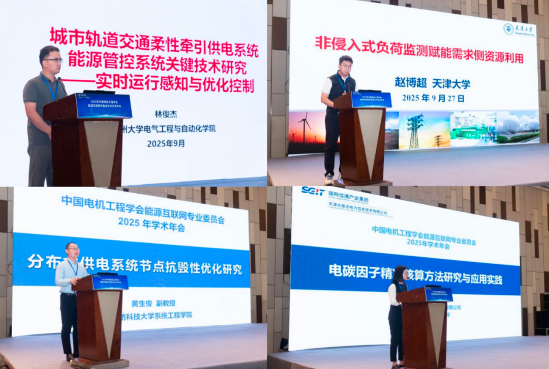 The Young Scholars Academic Exchange session was hosted by Professor Zhang Pei of the School of Electrical Automation and Information Engineering, Tianjin University. Associate Professor Lin Junjie (Fuzhou University), Associate Professor Zhao Bochao (Tianjin University), Associate Professor Huang Shengjun (National University of Defense Technology), and Senior Engineer Liu Juanyu (Tianjin Puxun Electric Power Information Technology Co., Ltd.) presented on “Real-Time Operation Sensing and Optimization of Urban Rail Flexible Traction Power Supply Systems,” “Non-Intrusive Load Monitoring Technology Empowering Demand-Side Resource Utilization,” “Optimization of Node Resilience in Distributed Power Supply Systems,” and “Precise Calculation Methods and Applications of Electric-Carbon Factors,” respectively, demonstrating the innovation and academic commitment of young scholars.