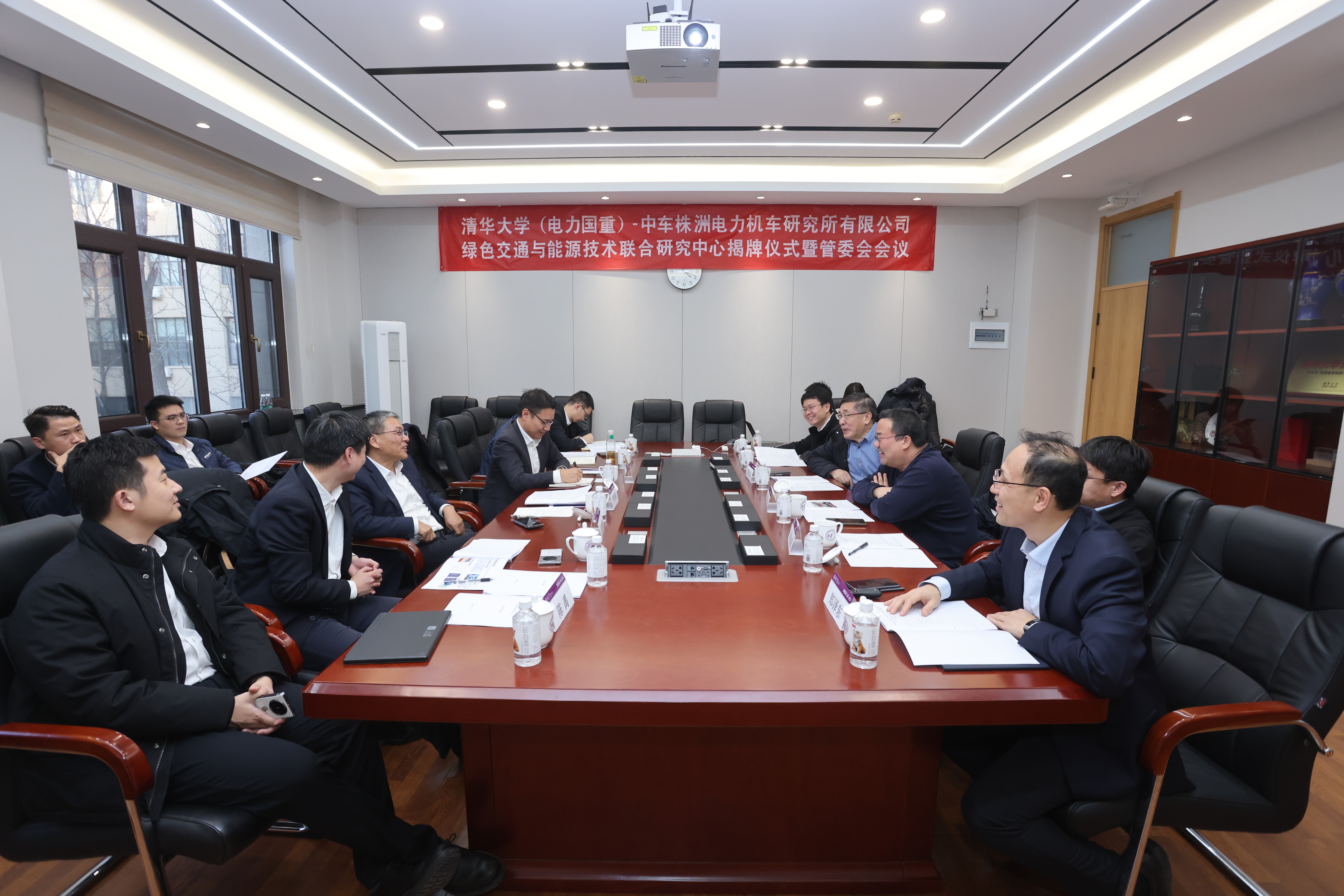 1月6日下午,清华大学(电力国重)-中车株洲电力机车研究所有限公司绿色交通与能源技术联合研究中心揭牌仪式暨管委会会议在清华大学西主楼举行。清华大学常务副校长曾嵘,中车株洲电力机车研究所有限公司党委书记、董事长李东林出席仪式并为联合研究中心揭牌。中车株洲所副总经理、研究院院长刘海涛,研究院副院长刘群欣,董事会办公室主任陈禹,研究院资源规划部部长谢喆,时代半导体副总经理操国宏;清华大学国重管理中心副主任、科研院技术转移管理办公室主任黄春梅,新型电力系统运行与控制全国重点实验室主任闵勇、副主任徐飞,电机系党委副书记余占清,电机系教师李永东、王奎等双方代表共同出席。仪式由清华大学电机系党委书记、联合研究中心主任郑泽东主持。