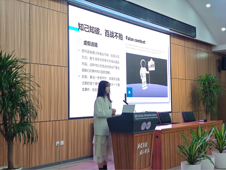 10月26日晚,电机系电4党支部组织生活会在西主楼3-217报告厅顺利召开,系党委书记郑泽东老师、电4年级级主任沈瑜老师出席并发表讲话。会议上,新闻学院24级硕士、校级讲师叶子学姐以“识别网络中的假新闻与诈骗风险”为主题作报告,中关村派出所反诈中心民警宗克同志作反诈宣讲。同时有清华大学社区民警毛一辉同志及保卫处多位老师参会。支部约65位积极分子参会,会议由电4党支部书记叶维艺主持。