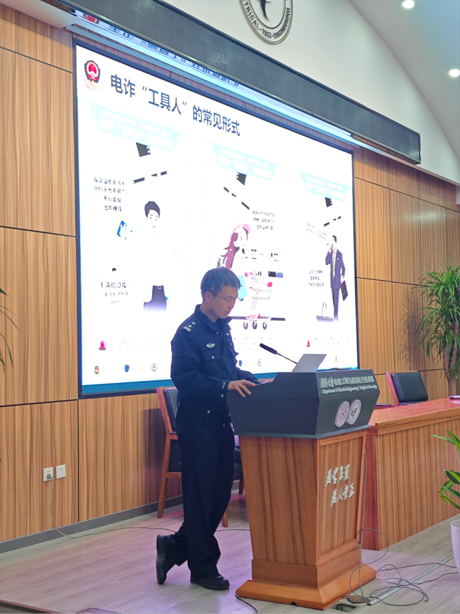 随后,清华大学社区民警毛一辉同志发言。毛警官表示,清华大学的师生在中关村辖区范围内诈骗率较高,同学们一定要提高警惕。学校平时也开展了很多“钓鱼邮件”等日常类反诈宣传,需多多关注。现在又出现各类新型诈骗方式,他提醒大家在谨防被骗的同时也要注意莫成了电诈帮凶。例如在闲鱼上以较低折扣购买京东购物卡时,可能就在不知不觉中成了洗钱等一环。毛警官希望大家也能互相提醒互相帮助,推行反诈力量。