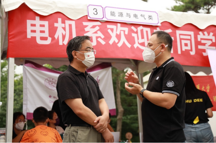 At 9::00 on the freshmen reception day in Tsinghua, Qiu Yong, Secretary of the University’s Party Committee, and his entourage came to the reception point to greet the teachers and students who participated in the reception work and talked with the freshmen. Mr. Qiu Yong talked to Mr. Kang Chongqing, asked him about the situation of EEA’s undergraduate freshmen this year, and praised EEA’s excellent undergraduate training and teaching work. Later, Mr. Qiu Yong had a warm conversation with EEA’s freshmen who had completed the registration, inquired about the their families and their studies in detail, and encouraged them to contact new things and work hard in college life, so as to be a Tsinghua man worthy of the motherland and living up to the times.