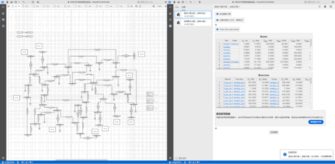 1) Accuracy of the simulation model: unit test of all the equipment models (independent equipment plus excitation source test) reveals an equivalent simulation accuracy compared with foreign commercial simulators under the same settings;