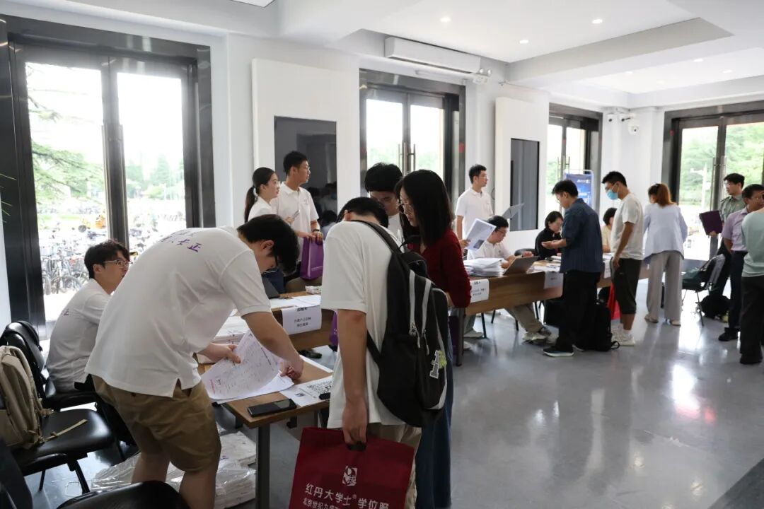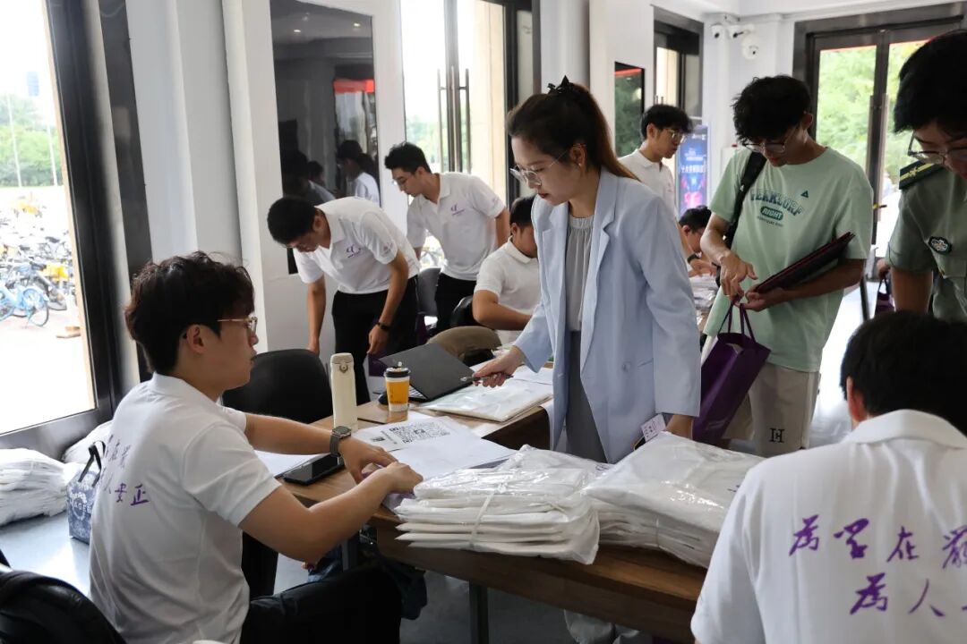 On the registration day, a banner reading “Warmly Welcome New Students” was hung at the entrance of the West Main Building. The teachers and volunteers responsible for registration were fully prepared to provide comprehensive registration services at the entrance. New graduate students received their orientation materials, including the student handbook, graduate student ID, enrollment card, student card, medical examination form, school badge, department T-shirt, and Graduate Student Association recruitment materials, and completed the necessary registration procedures. Students at the registration site strictly followed the registration process and completed all procedures in an orderly manner. Staff on-site enthusiastically answered questions, fully demonstrating the EEA’s considerate care for its students.