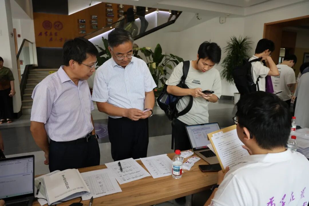 EEA Dean Prof. Kang Chongqing visited the registration site in the company of EEA Deputy Party Secretary Yu Zhanqing and Head of the Graduate Student Work Group Zhong Haiwang to inspect and guide the orientation work, extend cordial greetings to staff and volunteers, and communicate face-to-face with new students.