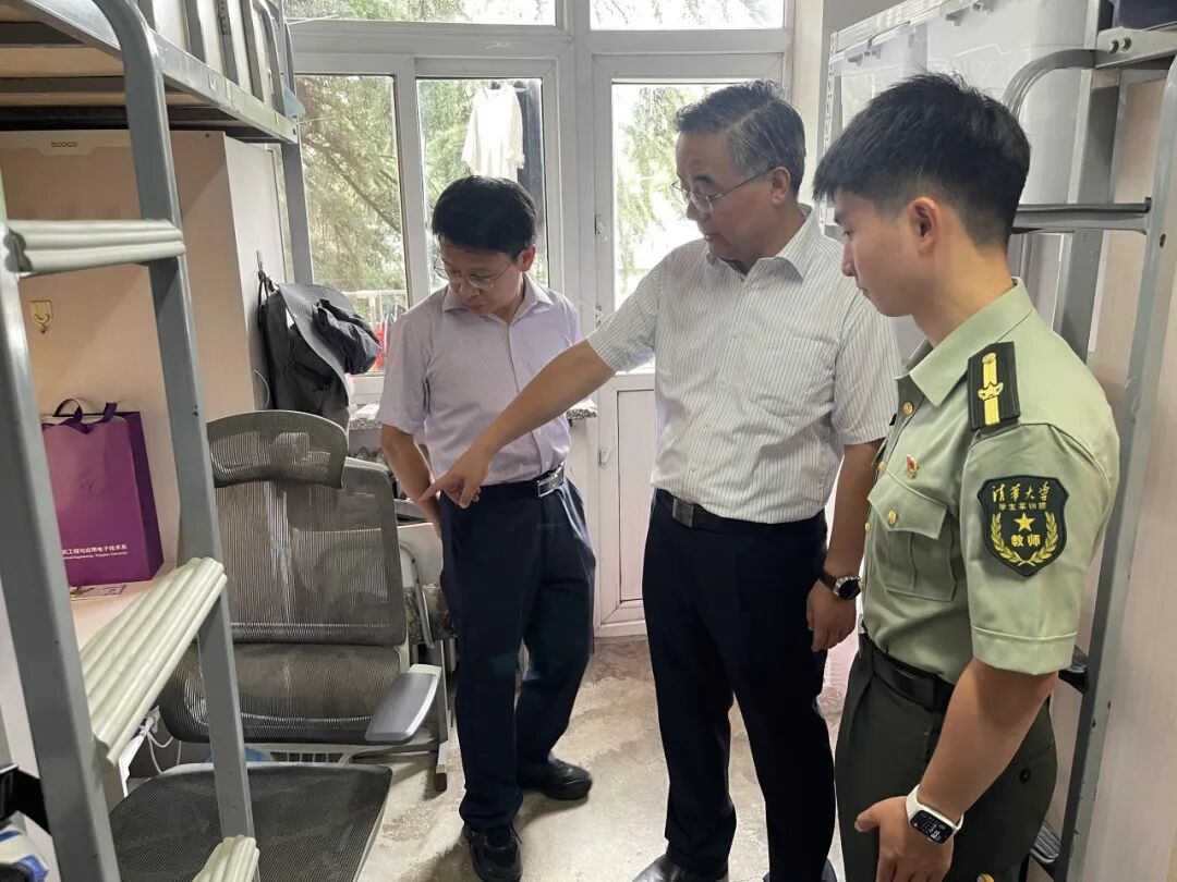 To gain an in-depth understanding of student accommodation and coordinate with the university’s renovation of older dormitories, EEA Dean Kang Chongqing led a visit to student dormitories following the registration site inspection. Deputy Party Secretary Yu Zhanqing, Head of the Graduate Student Work Group Zhong Haiwang, Student Work Assistant Luo Jiao, Community Center Teacher Wang Xin, and freshman class assistants Pang Jupeng and Xu Yuyan accompanied him. They visited Dormitory Buildings 3, 23, and 28. At each dormitory, the leadership inquired about students’ adaptation to the living environment, carefully inspected furniture, facilities, sanitation, and safety, and patiently listened to students’ feedback. Notably, Building 3 had been Prof. Kang Chongqing’s dormitory during his graduate studies. During the visit, he reflected on the dramatic changes to the dormitory and recalled his own graduate student experience.