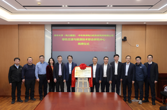 On the afternoon of January 6, the unveiling ceremony of the Tsinghua University (State Key Laboratory of Electric Power) – CRRC Zhuzhou Electric Locomotive Research Institute Co., Ltd. Joint Research Center for Green Transportation and Energy Technology, along with the Management Committee meeting, was held at the West Main Building of Tsinghua University. Tsinghua University Executive Vice President Zeng Rong and CRRC Zhuzhou Electric Locomotive Research Institute Co., Ltd. Party Secretary and Chairman Li Donglin attended the ceremony and unveiled the Joint Research Center. Deputy General Manager of CRRC Zhuzhou Electric Locomotive Research Institute Liu Haitao, Deputy Director of the Research Institute Liu Qunxin, Director of the Board Office Chen Yu, Director of the Resource Planning Department Xie Zhe, Deputy General Manager of Times Semiconductor Cao Guohong; Deputy Director of Tsinghua University State Key Laboratory Management Center and Director of Technology Transfer Office Huang Chunmei, Director Min Yong and Deputy Director Xu Fei of the National Key Laboratory of Operation and Control of New Power Systems, Deputy Secretary of the Party Committee of the Department of Electrical Engineering Yu Zhanqing, faculty members Li Yongdong and Wang Kui, and other representatives from both sides attended. The ceremony was hosted by Zheng Zedong, Party Secretary of the Department of Electrical Engineering of Tsinghua University and Director of the Joint Research Center.