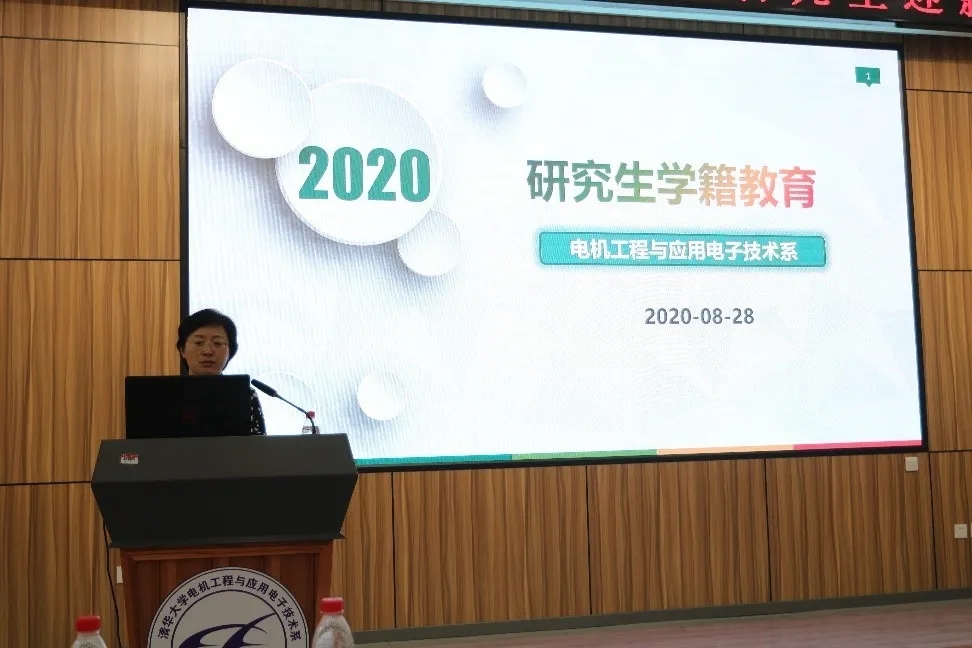 入学教育的最后,电机系党委研工组组长钟海旺副教授为各位新生详细介绍了研究生工作组情况。他依次介绍了2020级新生的基本情况,研工组的构成以及各研工助理的分工,并向大家展示了过去一年中研工组举办的形式多样、内容丰富的各类活动,涉及党建、爱国主义教育、学术与科研、文化建设、体育赛事、社会实践、志愿服务以及就业与职业发展等多个方面。最后,他再次向各位新生表示热烈的欢迎,并表示,同学们无论遇到哪方面困难,研工组都会尽可能帮助同学们解决。