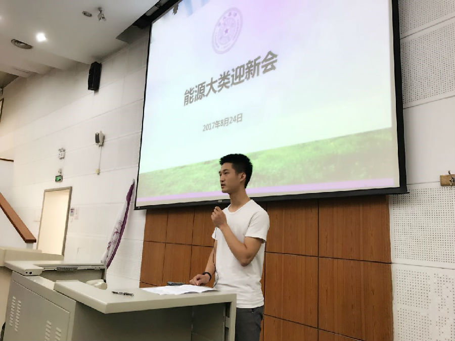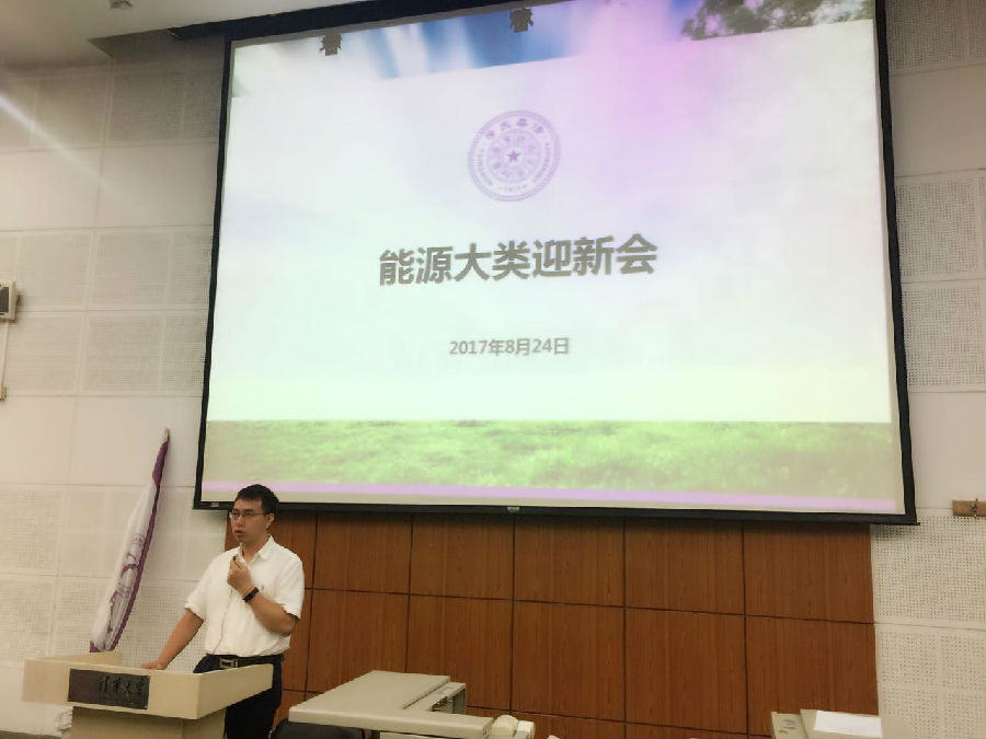 热能系14级本科生曹玉立、电机系14级本科生孙浩作为老生代表向新同学们表达了热烈的欢迎,并分享了他们在清华园3年以来的学习生活感悟。工物系的新同学宋士奕作为新生代表发言,表达了献身能源领域的豪情,对未来在清华大学的学习和生活充满了向往和期待。