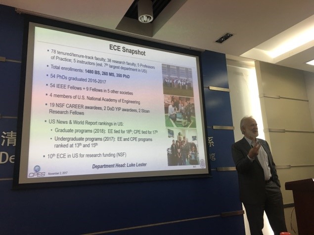 2017年11月2日,美国弗吉利亚理工大学电力电子中心(CPES)主任Dushan Boroyevich(杜山.波罗耶维奇)教授访问电机系,并做了题为 “Future Electronic Power Systems”(未来电子电力系统)的学术报告,报告由电机系副系主任肖曦教授主持,电机系30余名师生参加了学术报告会。报告会上,Prof. Froehlich介绍了弗吉尼亚理工大学在相关领域的研究进展,并详细介绍了基于新一代电力电子器件的电能变换与控制系统,报告内容引起电机系与会人员的广泛兴趣和热烈讨论。