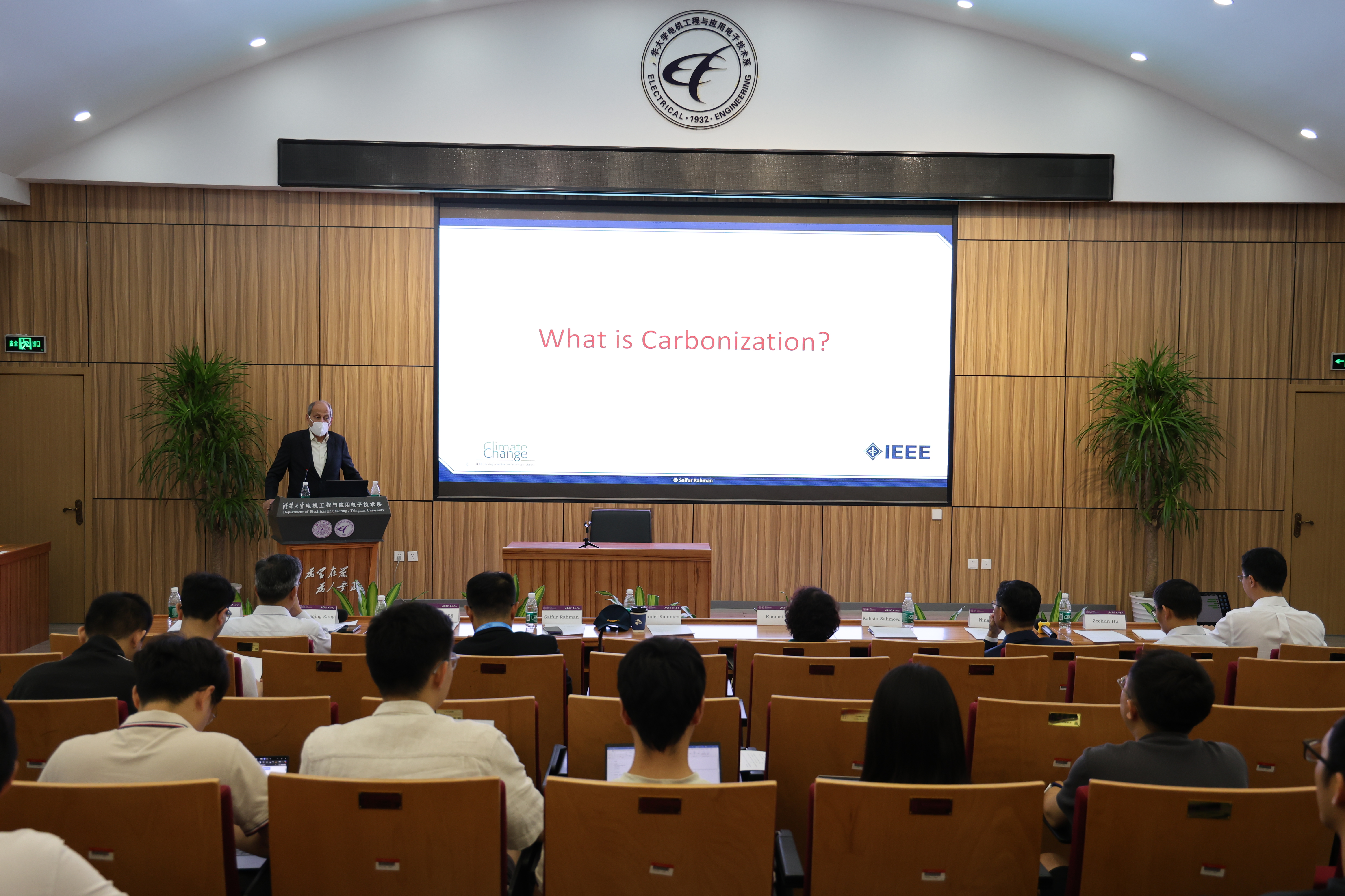 在报告环节,Saifur Rahman教授系统解析了碳排放的定义、成因及全球影响,重点聚焦占全球碳排放总量30%以上的电力行业,提出了针对性的减排技术路径。他指出,为达成电力行业碳减排目标,工业化国家与新兴经济体需深化协作,综合应用风能、太阳能、水力、核能等低碳发电技术,并搭配储能系统、跨境输电网络及能效提升等先进技术,构建多技术协同的低碳能源体系。同时,Saifur Rahman教授还详细介绍了国际电气与电子工程师协会(IEEE)气候变化项目及配套行动计划,为全球气候治理的技术落地提供参考方向。