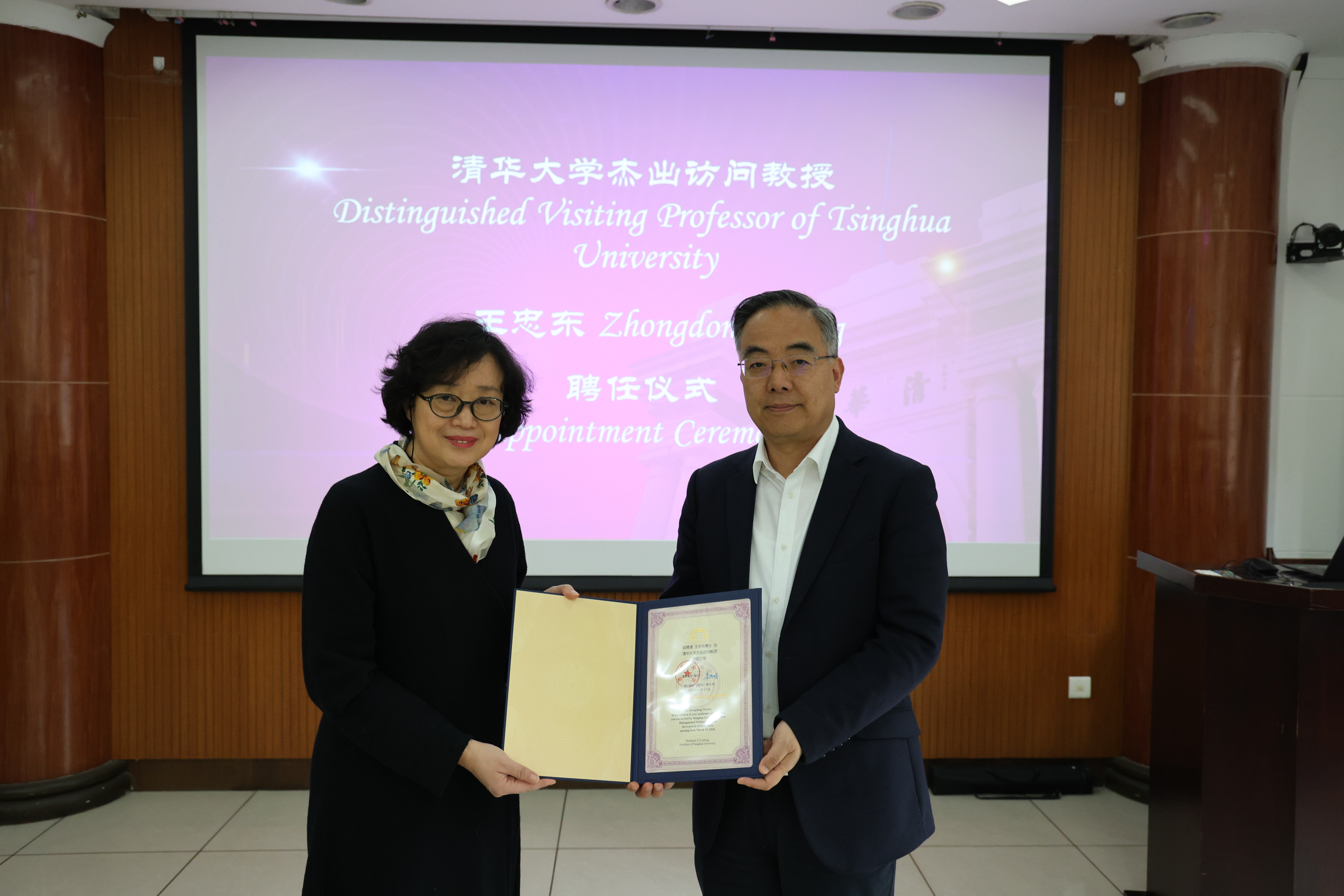 随后,电机系主任康重庆向王忠东教授颁发清华大学杰出访问教授聘书。康重庆对王忠东教授长期以来支持清华大学电气工程学科发展与国际交流,特别是积极推动清华大学—曼彻斯特大学博士联授项目表示了诚挚的感谢,并表示希望借此次王忠东教授受聘清华大学杰出访问教授的机会,进一步推动双方在电气工程及相关前沿交叉领域的人才培养与科研合作。